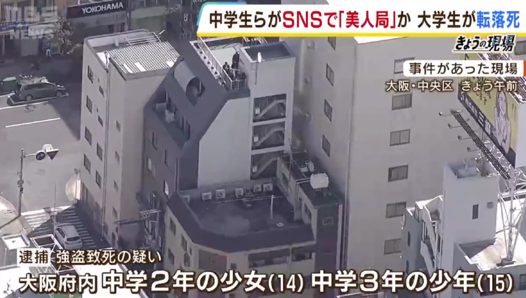 大阪府で起きた中学生によるつつもたせにより大学生が転落死したビルについて調べました。